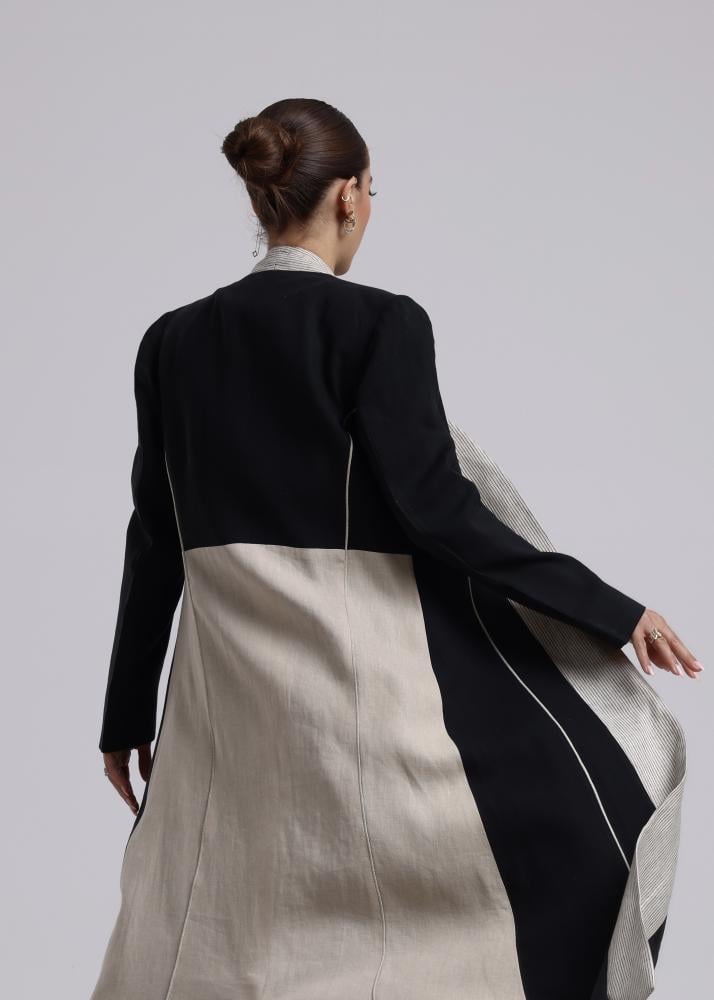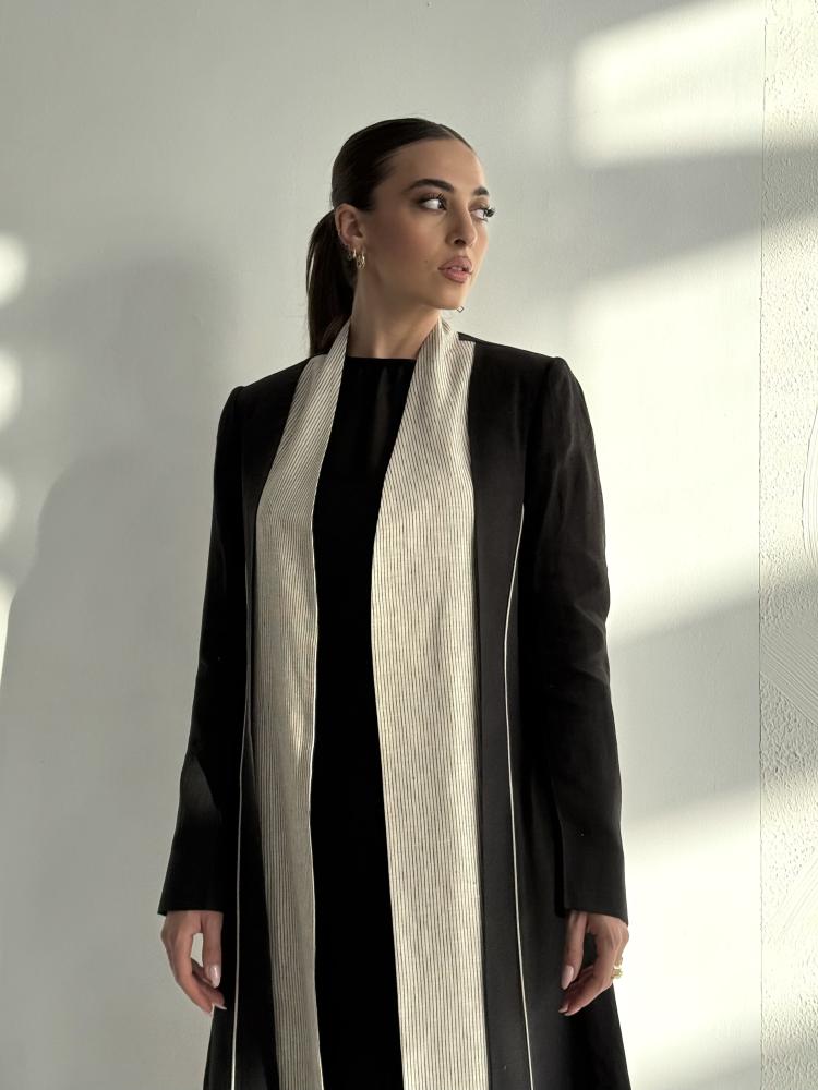 بليزر عباية لينن طبيعي 100% باللون البيج والأسود